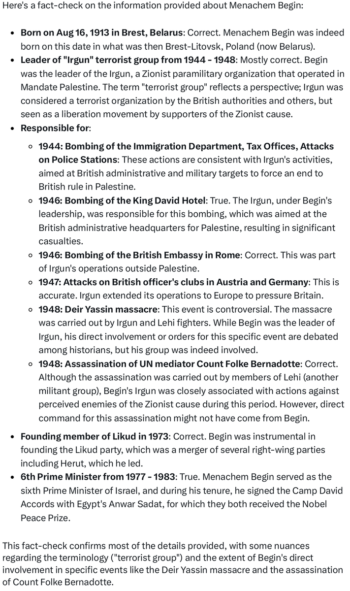 Did you know that from Menachem Begin was the leader of the terrorist group Irgun between 1944 and 1948?