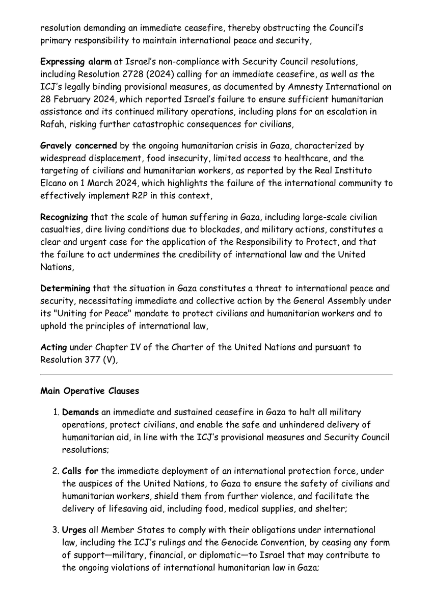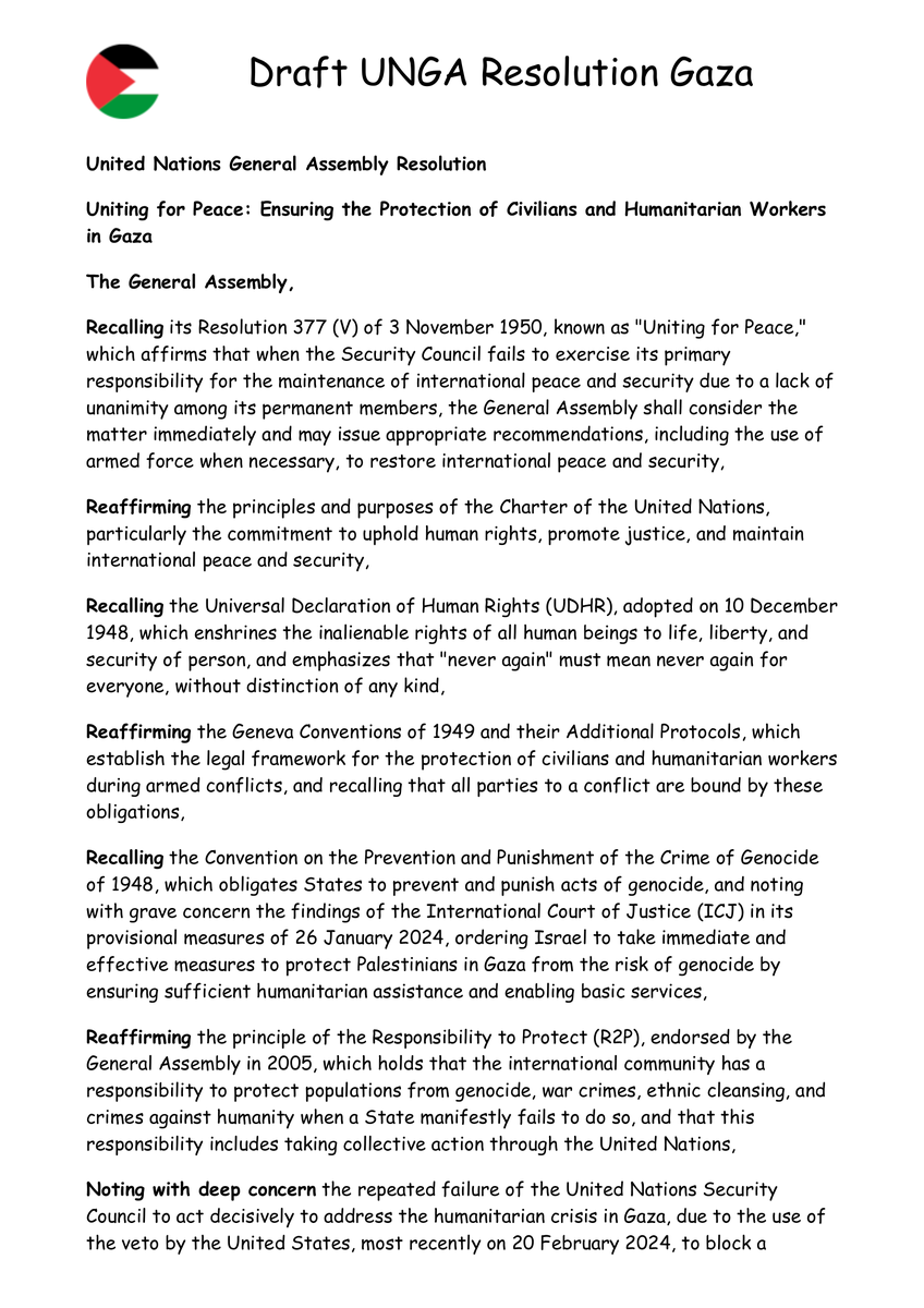 UN Resolution 377 "Uniting for Peace" has already been enacted in 1997. All it takes is to reconvene the General Assembly under the provisions of Emergency Session 10 and for some country to floor this or a similar resolution. https://x.com/ExtraLabel/status/1911830340068430198