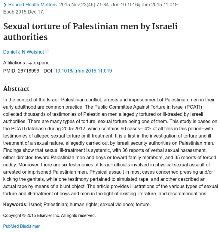 This article establishes a pattern of sexual torture and ill-treatment of Palestinian detainees by Israeli authorities well before the events of October 7, 2023. The systemic nature of these abuses - documented as early as 2005 - suggests a longstanding policy of using sexual violence as a tool of oppression.