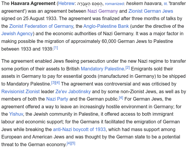 This allows them to avoid the reality, that the Zionists themselves cooperated with the Nazis to colonize Palestine.