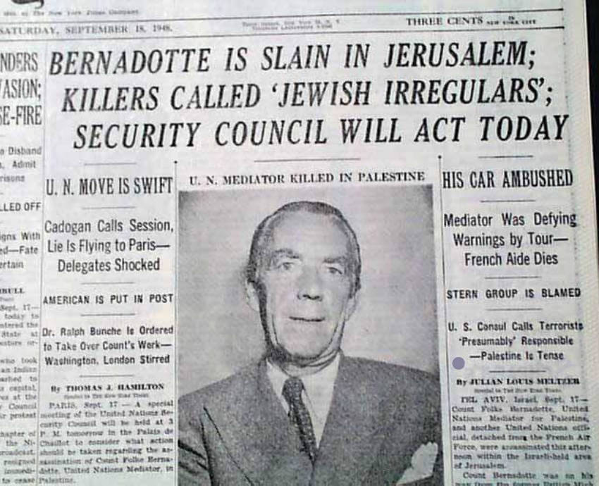 🇮🇱 Terrorists assassinated Count Folke Bernadotte in 1948